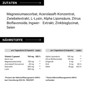 - Zink: perfekte Ergänzung zu Vitamin C, trägt zu einer normalen Funktion des Immunsystems bei