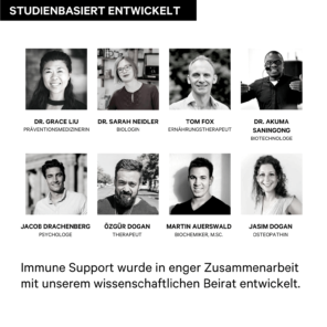 Immune Support wurde interdisziplinär von verschiedenen Experten aus dem Bereich der alternativen Therapie, Medizin und Biowissenschaft entwickelt und beruht auf aktueller Forschung und offiziell bestätigten Wirkversprechen.
